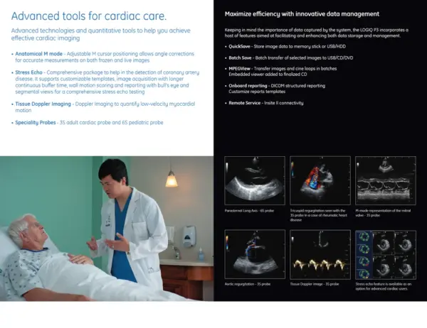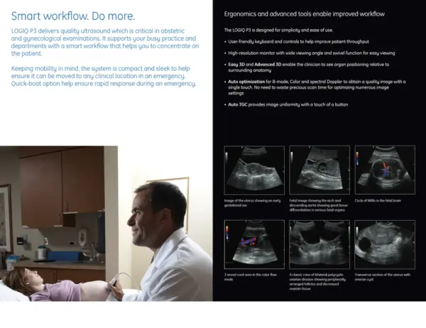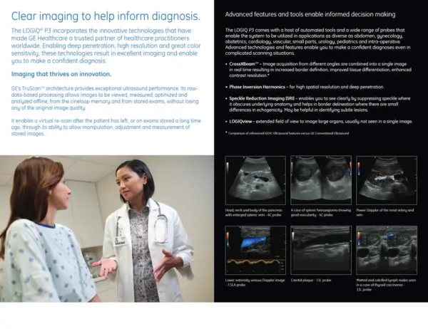 GE Logiq P3 Expert color Doppler ultrasound is small, featherweight ultrasound designed for clinics needing an inexpensive ultrasound for general imaging /OB/GYN. Logiq P3 has lower price & is typically used in low-volume or smaller diagnostic center/hospitals. Logiq P3 offers high-end imaging technologies such as Cross X Beam, Tissue Harmonics, and Speckle Reduction Imaging.